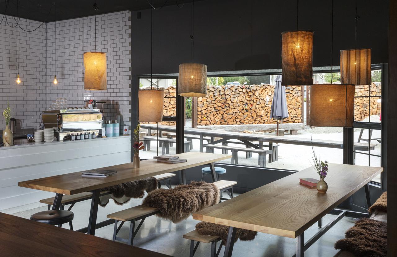 The rooms are simple, cosy and a little moody. You will find commissioned local artwork and wall hangings, monogrammed blankets woven from fine New Zealand wools, recycled kilim rugs fashioned into cushions and natural wall-linings made from carbon negative cork. In the bathrooms, the hotel's own natural shampoos and body wash are created with the local scents of manuka honey and myrtle.