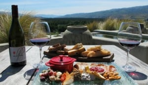 Ensuite, ne voulant pas marcher jusqu'à Bannockburn (le Sentier de la Rivière était une chose, mais 16 km supplémentaires semblaient un peu excessifs), nous avons opté pour une location de demi-journée avec Blue Bubble Taxi. En arrivant à Mt Difficulty, le grondement de mon estomac a annoncé bruyamment qu'il était temps pour une nourriture plus solide. Le menu à Mt Difficulty est difficilement choisi et chaque plat suffit à vous faire saliver rien qu'en le lisant à voix haute. Après de longues agonies, nous avons opté pour un plateau Mt Difficulty qui incluait des bouchées imaginatives telles que du jambon glacé au miel et moutarde de thym sauvage, et du moki fumé de Stewart Island. Nos papilles gustatives ont été bien et vraiment massées et c'était un régal indulgent de savourer de si bonnes choses. Depuis la position élevée de Mt Difficulty sur un éperon rocheux, nous nous sommes installés et avons admiré la vue panoramique d'un paysage semi-aride.