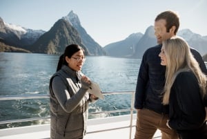 J'ai choisi d'explorer Milford lors d'une excursion en bateau d'une heure et demie avec Mitre Peak Cruises. Notre Skipper Caleb explique que par endroits, le Sound fait trois kilomètres de large et plus de trois cents mètres de profondeur. Je lève les yeux vers certaines des plus hautes falaises marines du monde - s'élevant à 1 200 mètres à pic sur l'eau et j'admire le cliché de Mitre Peak dominant la ligne d'horizon.