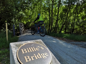 Un bon endroit pour s'arrêter est au pont de Billie qui traverse le ruisseau Hayes. Si vous avez des collations avec vous, c'est l'occasion d'une pause rapide et de se détendre.  Plus loin et en montant Thompson’s Hill (pas un problème avec un e-bike) - la plus longue et dernière côte de cette balade, vous aurez une vue sur la rivière Kawarau et la chaîne de montagnes de Remarkables et Rastus Burn. C'est ensuite une descente facile à travers de belles terres pastorales entourées de trois chaînes de montagnes. Le sentier Twin Rivers se termine à Morven Ferry Road.Â