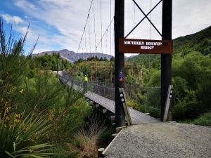 Notre balade commence au pont de Kawarau Falls à Frankton. Le sentier serpente le long de la réserve panoramique de Kawarau Falls jusqu'au bord de la rivière Kawarau. Le sentier continue le long des rives bordées de saules et sur le pont historique de Old Lower Shotover. C'est définitivement un moment pour prendre des photos. La vue sur la rivière Shotover et jusqu'à Coronet Peak est majestueuse.