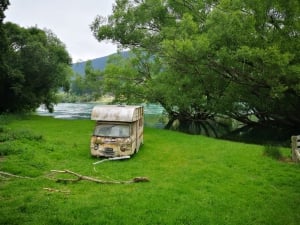 Dall'altra parte c'è un pannello informativo che segna l'inizio del cammino di 73 chilometri. Da qui, abbiamo seguito le rive del fiume Clutha con la sua distintiva acqua turchese e correnti veloci. Lungo il percorso sono presenti pannelli informativi che evidenziano i segni della corsa all'oro del 1880 e narrano delle condizioni che gli insediati affrontavano. Di tanto in tanto passavamo attraverso aree boscose per offrire ombra gradita dal sole che ci batteva addosso. I campi di frutteti su entrambi i lati della valle offrivano una distesa di colori mentre ci dirigevamo verso la nostra prima tappa a Roxburgh. Abbiamo soggiornato in un cottage a ottimo rapporto qualità-prezzo presso Clutha Gold Cottages. Se decidete di soggiornare qui, assicuratevi di cercare le bandiere gialle sul sentiero quando siete a un paio di chilometri dalla città - questo fornisce un percorso diretto dal sentiero ai cottage e vi risparmierà l'errore che abbiamo fatto - camminare prima in città e poi tornare indietro.