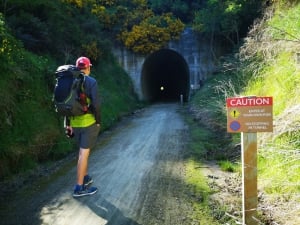 L'ultimo giorno, le nostre gambe resistono ancora. Il sentiero di questa ultima sezione segue la strada per gran parte senza più vedute del fiume ma offrendo comunque un paesaggio bellissimo. Abbiamo scalato verso il punto più alto del sentiero e siamo passati attraverso il Big Hill Tunnel. Costruito nel 1911 da fino a 100 uomini, avrete bisogno di accendere la luce del vostro telefono e fare attenzione a dove mettere i piedi durante i 434 metri di oscurità. Una volta fuori, siamo scesi in rigogliosi terreni agricoli verdi, attraversando la statale più volte. Lungo il percorso, vedrete ricordi della storia della regione con la scoperta dell'oro, la lavorazione della fibra di lino per la produzione di corde (Evans Flat) e l'afflusso di cercatori cinesi ai campi d'oro che si vede a circa 1-2 km da Lawrence. L'ultima parte del cammino ci ha condotto attraverso la graziosa campagna di Evans Flat e passato dal Campo Cinese.